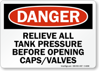 An OSHA Danger Sign ensures that everyone is well informed of potential hazards. Post this sign and caution everyone to relieve tank pressure before opening caps or valves.