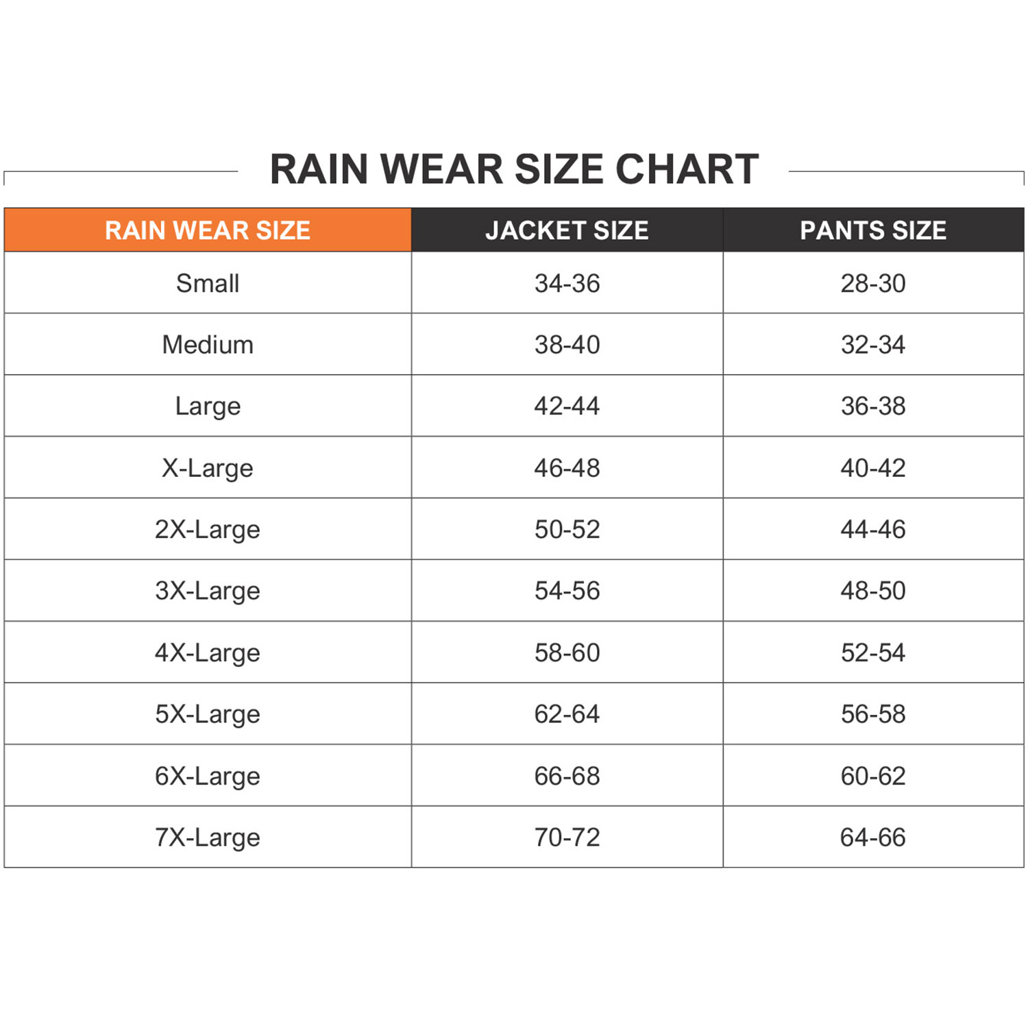 Two-piece rain coat that is 49 inches with a ventilated cape back and underarms.