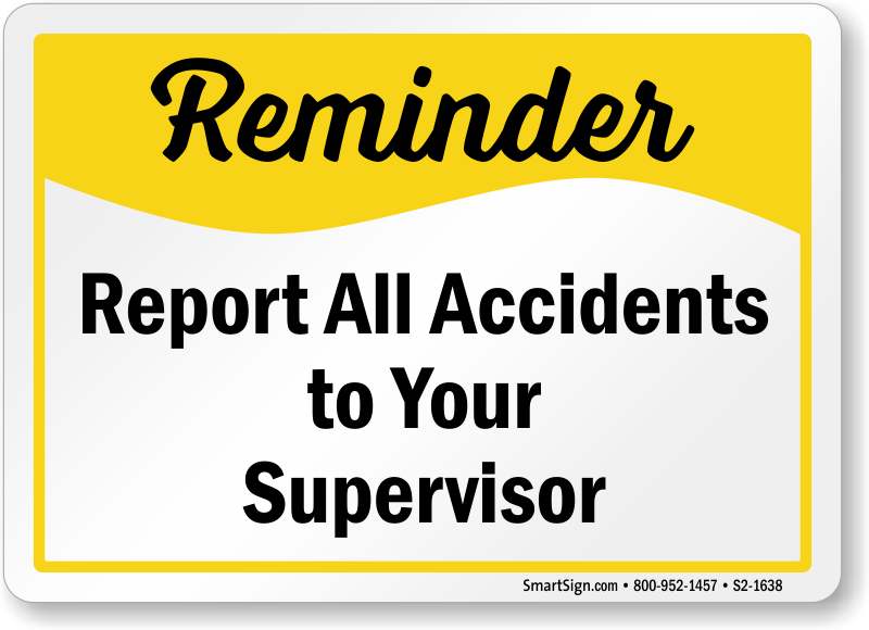 Safety Reminder Sign: Report All Accidents To Your Supervisor S2-1638