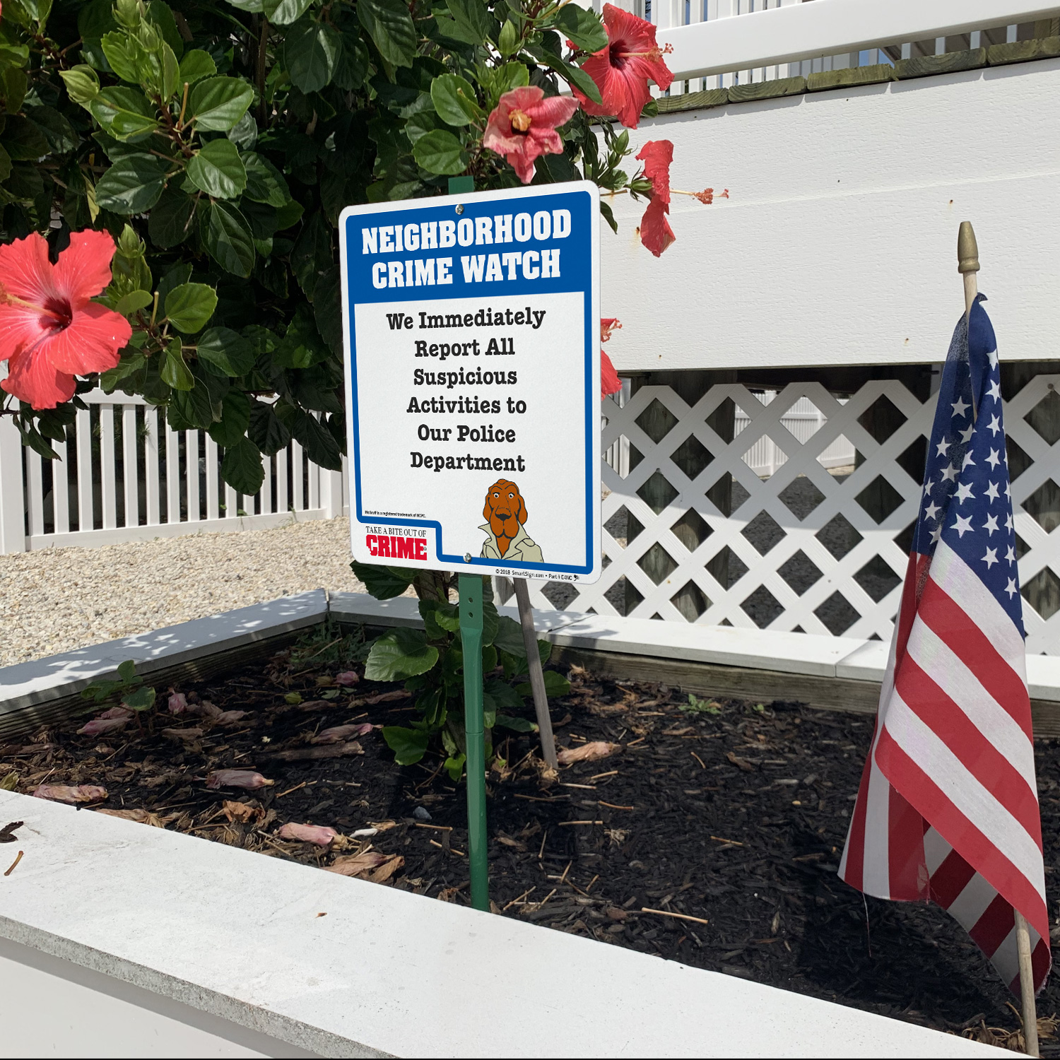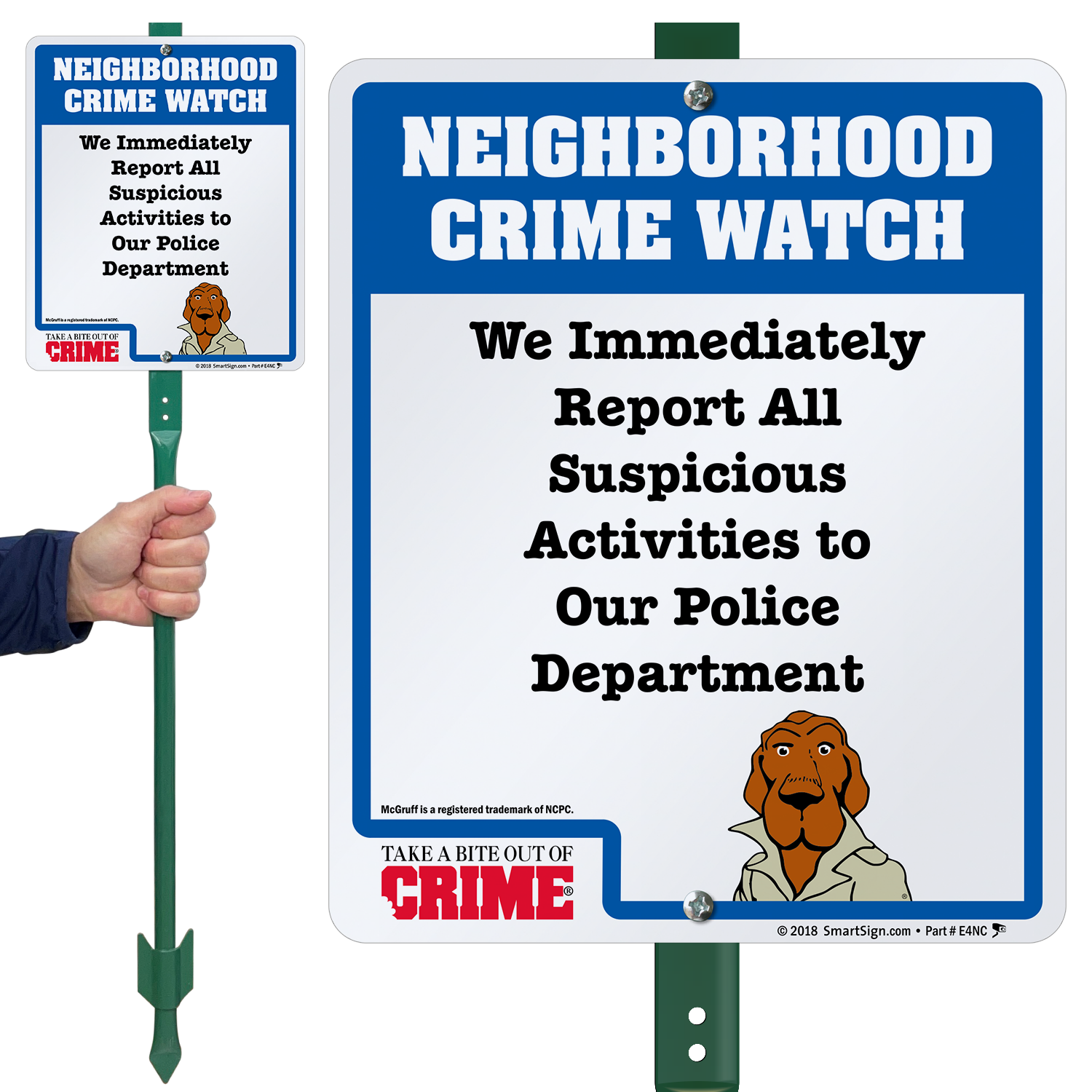 McGruff LawnBoss® Sign & Stake Kit: Neighborhood Crime Watch - We Immediately Report All Suspicious Activities To Our Police Department K2-5202