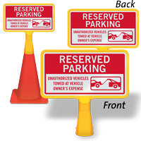 ConeBoss Sign: Reserved Parking - Unauthorized Vehicles Towed At Vehicle Owner's Expense (Front/Back)