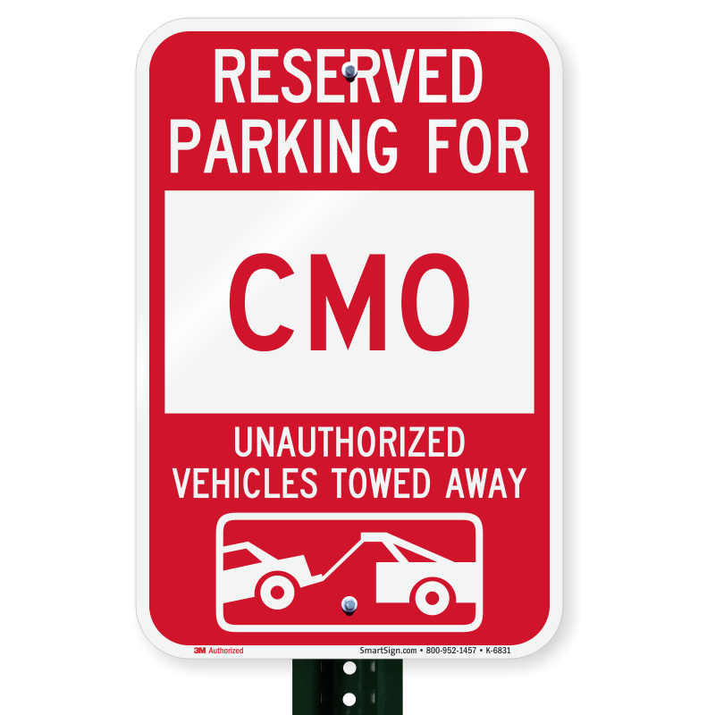 Parking Lot Sign: Reserved Parking For CMO Unauthorized Vehicles Towed Away (With Tow Away Graphic) K-6831 Learn More...