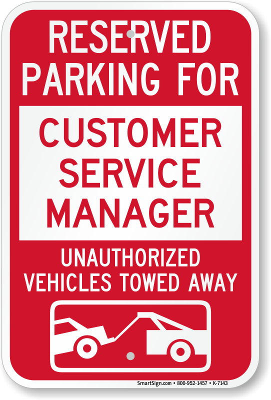 Novelty Parking Lot Sign: Reserved Parking For Customer Service Manager Unauthorized Vehicles Towed Away (With Tow Away Graphic) K-7143 Learn More...
