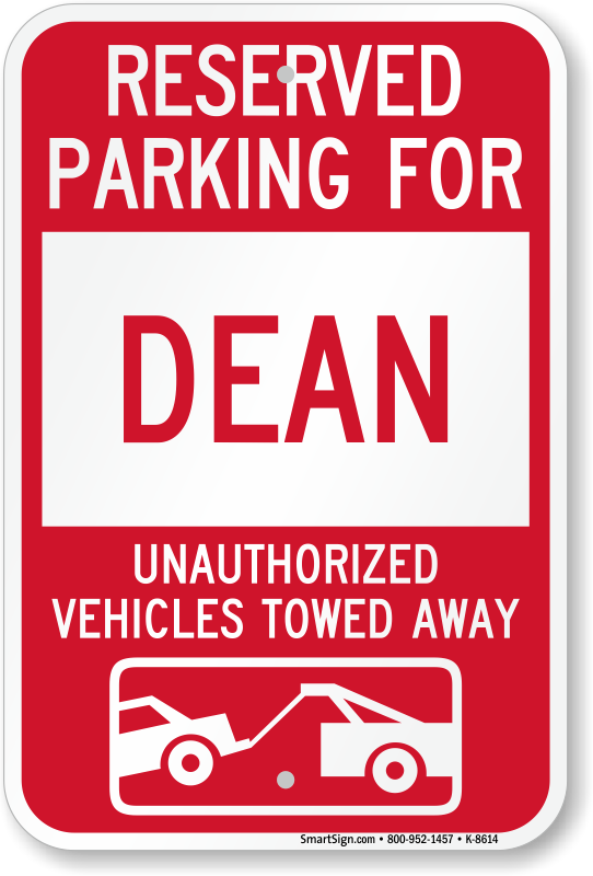 Parking Lot Sign: Reserved Parking For Dean Unauthorized Vehicles Towed Away (With Tow Away Graphic) K-8614