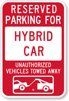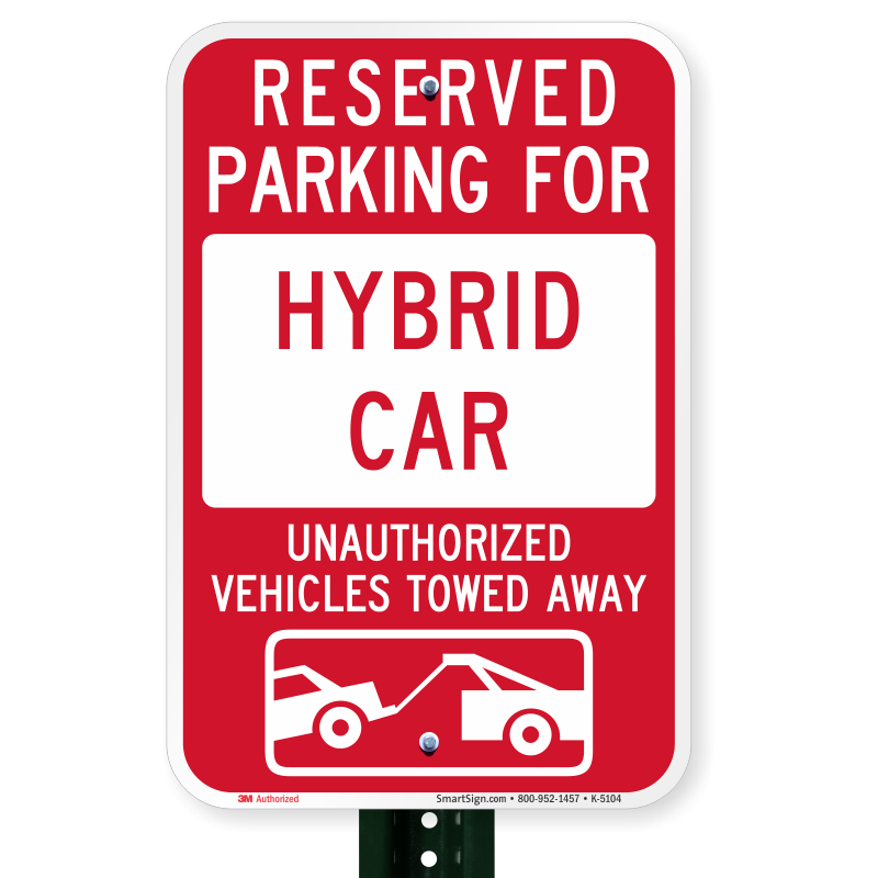 Tow Away Sign: Reserved Parking For Hybrid Car : Unauthorized Vehicles Towed Away K-5104 Learn More...