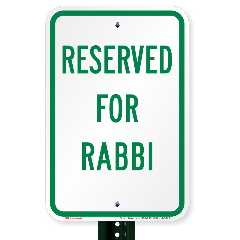 Reserved Parking Sign: RESERVED FOR RABBI K-5042 Learn More...