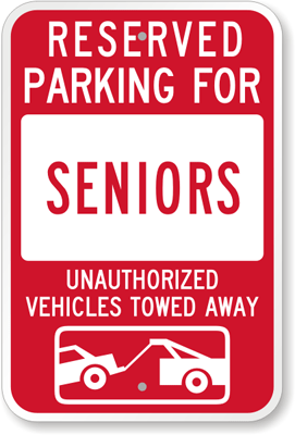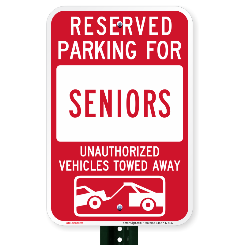 Tow Away Sign: Reserved Parking For Seniors : Unauthorized Vehicles Towed Away K-5147 Learn More...