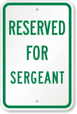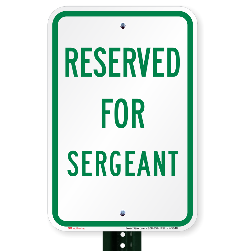 Reserved Parking Sign: RESERVED FOR SERGEANT K-5048 Learn More...