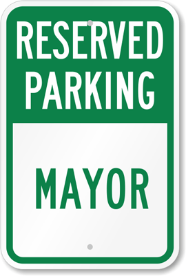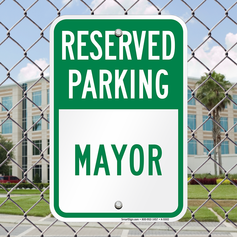 Reserved Parking Sign: RESERVED PARKING MAYOR Learn More...