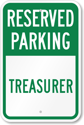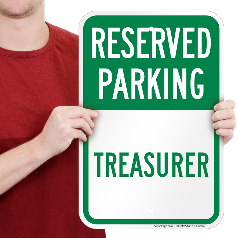 Reserved Parking Sign: Reserved Parking - Treasurer K-5504 Learn More...