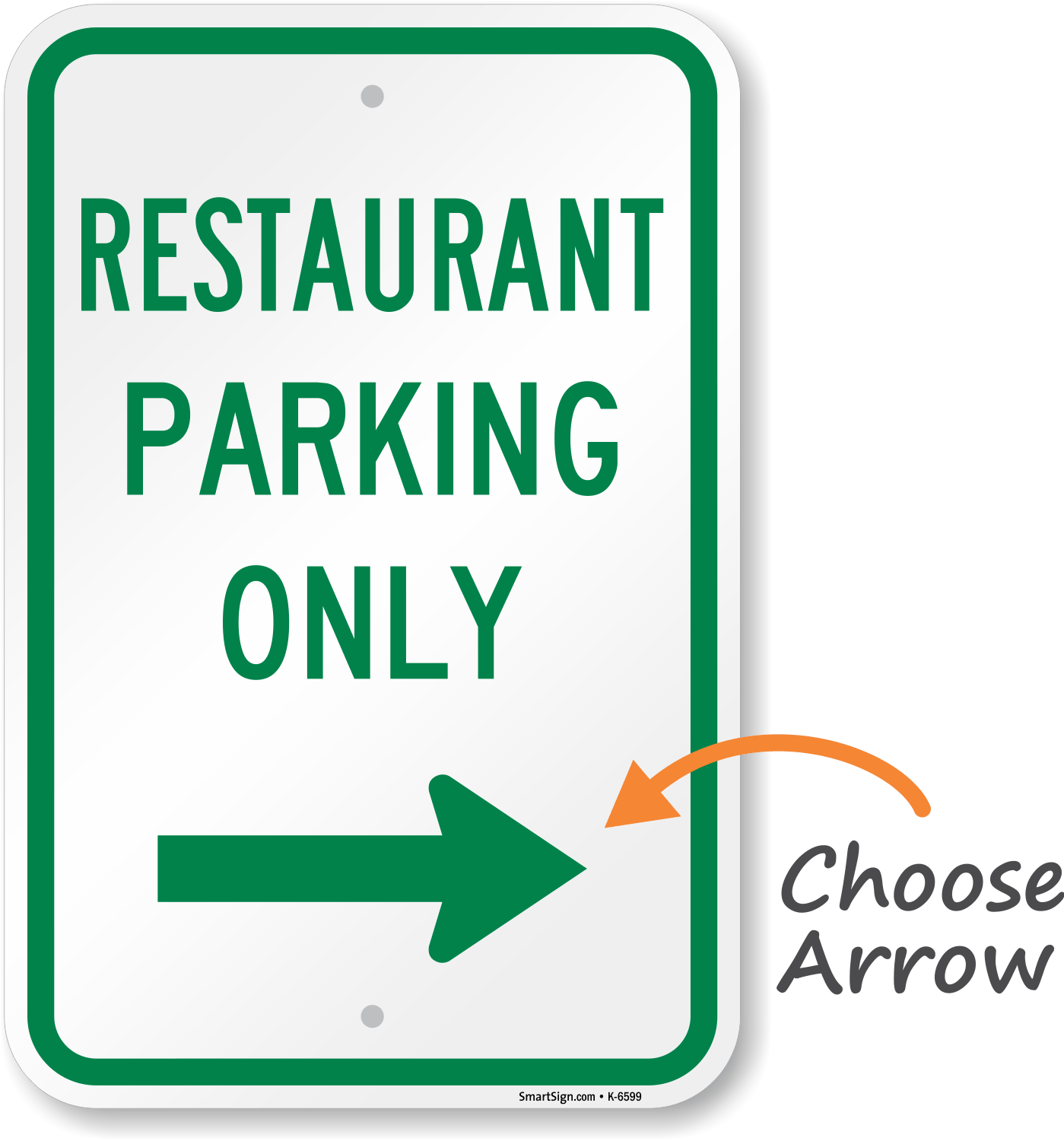 Parking Sign: Restaurant Parking Only (Choose Arrow) K-6599 Learn More...