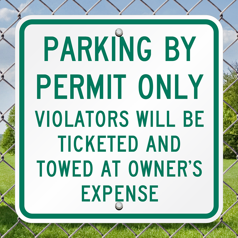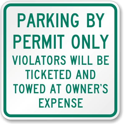 Reserved Parking Sign: Parking By Permit Only Violators Will Be Ticketed and Towed At Owner's Expense K-1933 Learn More...