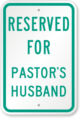 Your Pastor's husband deserves a lighthearted way to prioritize parking. Organize your church parking area with this great 'Reserved for Pastor's Husband' reserved parking sign.