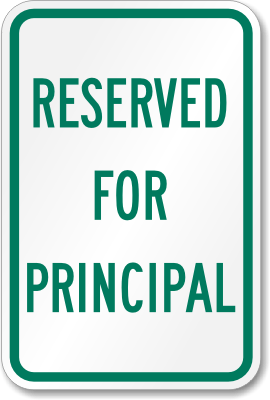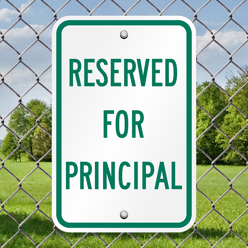Reserved Parking Sign: RESERVED FOR PRINCIPAL K-2611 Learn More...