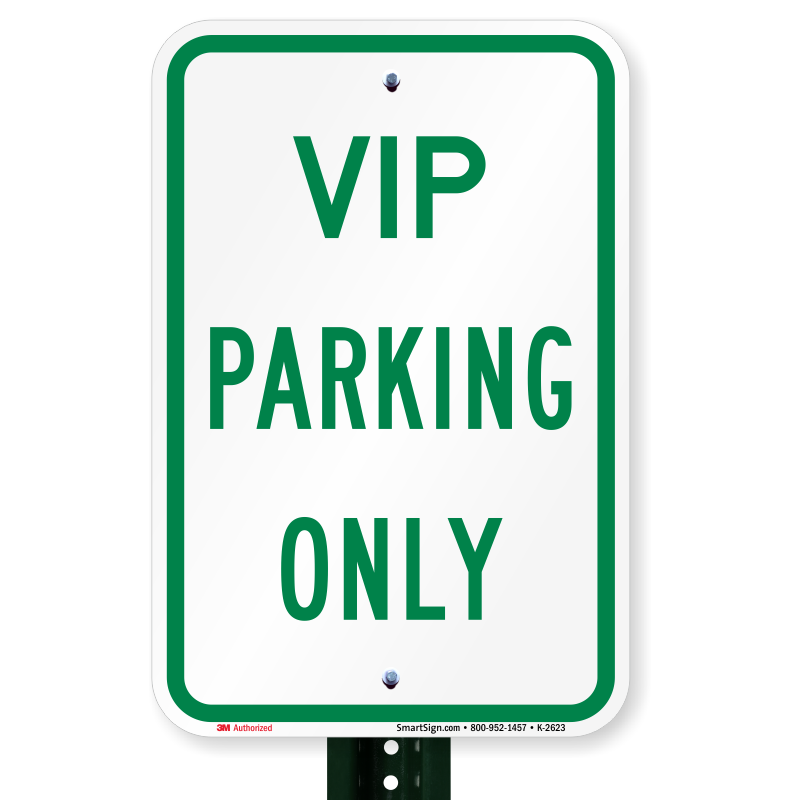 Reserved Parking Sign: VIP PARKING ONLY Learn More...