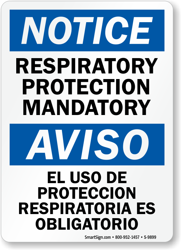 Use this bilingual notice sign to inform others that respiratory protection is mandatory in an area. This way you won't have to deal with people fainting all over the place.