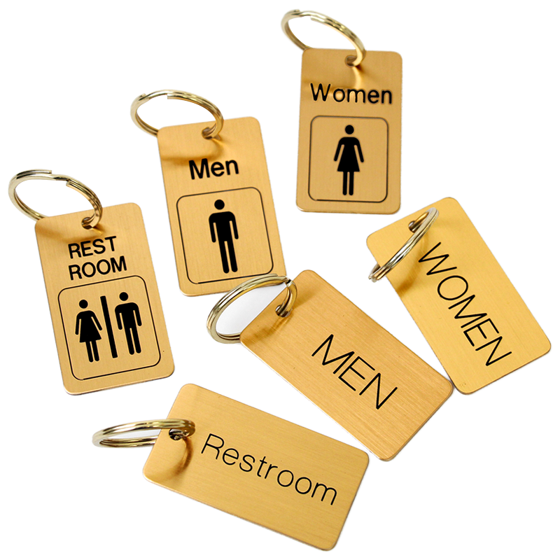 Ensure your restroom keys are never misplaced by looping them up with this double-sided Brass Engraved Key Chain.