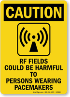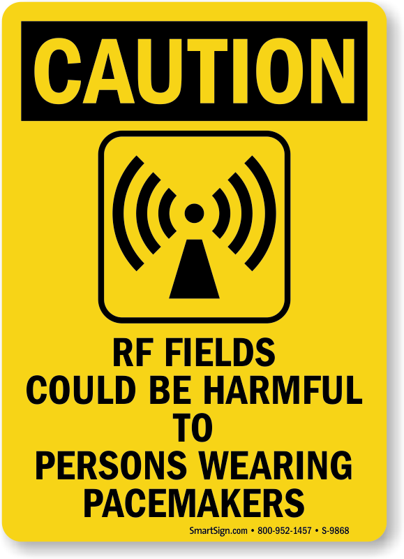 Radio frequency fields can be painful to persons wearing pacemakers, and it's best to warn them before anything dangerous can occur. Use this caution sign to protect these individuals.