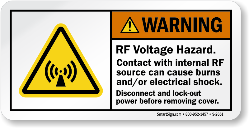ANSI Warning Label: RF Voltage Hazard, Contact With Internal Rf Source Can Cause Burns And/or Electric Shock (With Graphic) LB-2651 Learn More...
