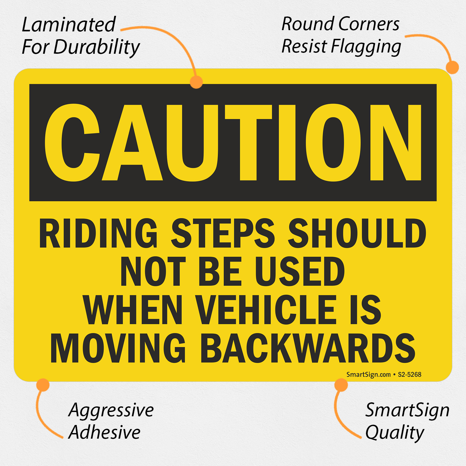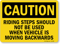 OSHA Caution Sign: Riding Steps Should Not Be Used When Vehicle Is Moving Backwards S2-5268