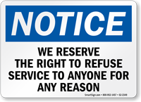 Refrain from putting up handwritten information. Our Right To Refuse Service Sign in OSHA Notice format looks professional.