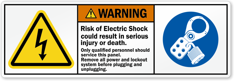 ANSI Warning Safety Label: Risk Of Electric Shock Could Result In Serious Injury Or Death Only Qualified Personnel Should Service This Panel... (With 2 Graphics) LB-2798