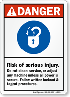 Keep others safe with this danger sign, by warning people of risk of serious injury and telling others to follow instructions before using the equipment.