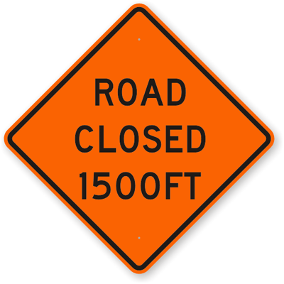 Road Closed Sign: Road Closed 1500FT K-7226 Learn More...