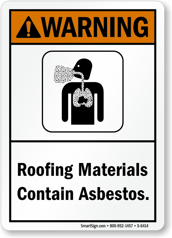 Warn about the Asbestos present in roofing material by using this ANSI warning sign, which explains with the help of a graphic to keep away from the substance.