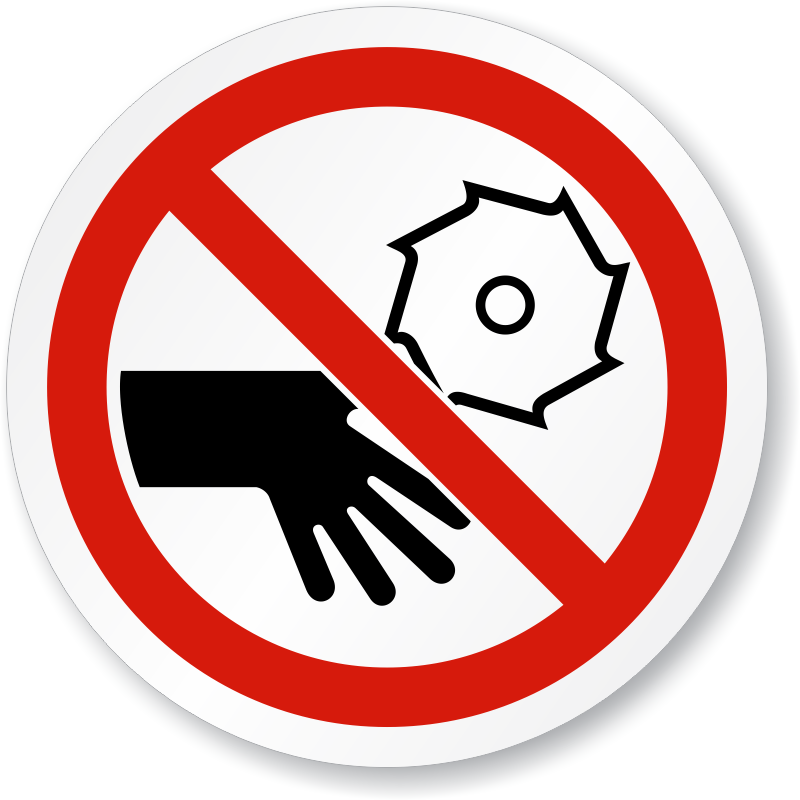 Warn workers to keep hands clear of the rotating blade while equipment is running. Post this ISO Prohibition Sign and send across a clear message to all.