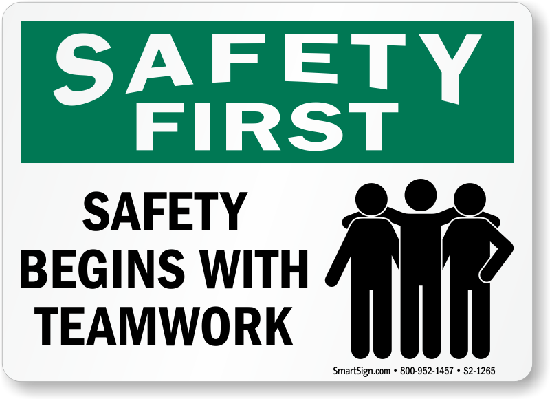 Ensure a safe environment at your workplace. Use this OSHA Safety First Sign to remind your workers to work in a team.
