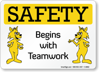 Teamwork Safety Sign: Safety Begins With Teamwork (with Two Foxes Graphic)