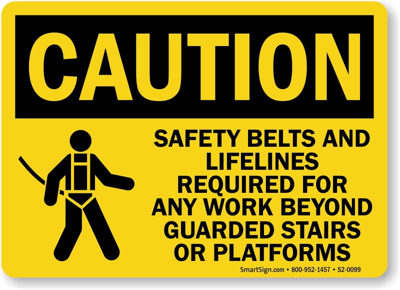 Nobody pays attention to wearing safety belts and lifelines while working beyond guarded stairs or platforms unless instructed. Use this OSHA Caution Sign to get your workers serious about safety.