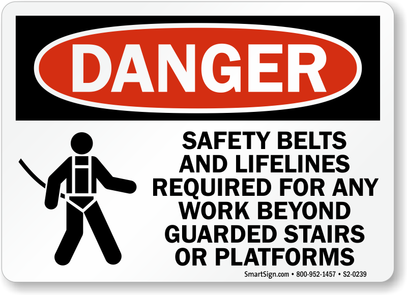 A simple OSHA Danger Sign can become a milestone in safety among your workers as it keeps reminding them of wearing safety belt and lifeline while working beyond guarded stairs or platforms.