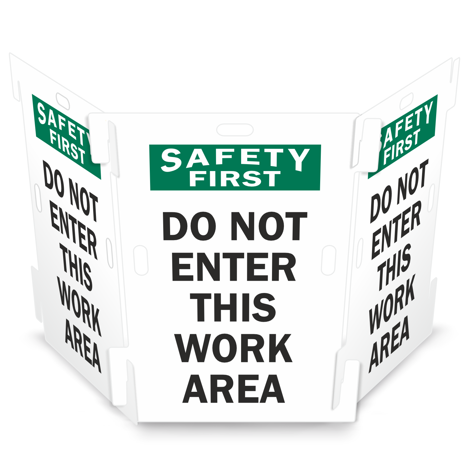 Interlocking Barricade Sign: Safety First: Do Not Enter This Work Area SF-1454