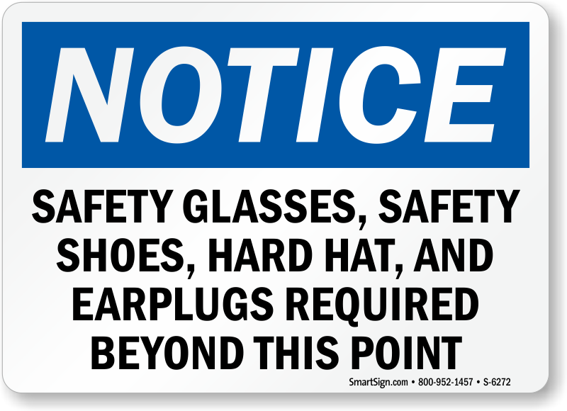 OSHA Notice Sign: Safety Glasses, Safety Shoes, Hard Hat And Earplugs Required Beyond This Point S-6272