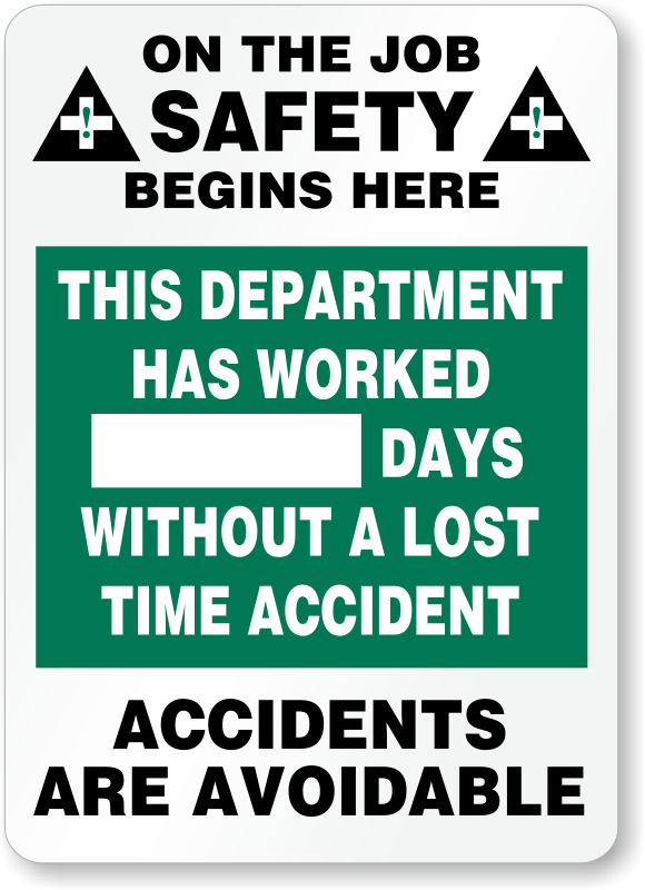 Dry erase Mark-a-Dayâ„¢ Safety Scoreboards provide a visual record of days without an accident. Accidents in the workplace are dangerous, leading to lost time and a reduction in productivity.