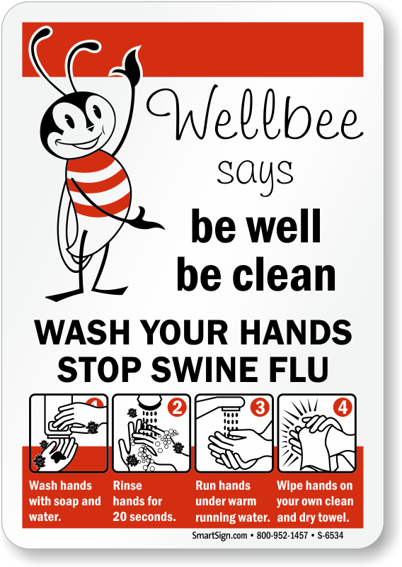 Listen to the Well Bee to be well. This hand washing sign is great for schools and other facilities.