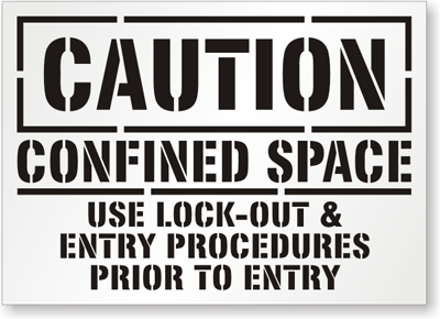 Create a Professional "Confined Space: Use Lock-Out & Entry Procedures Prior To Entry" Sign on any surface with reusable Floor Stencils.