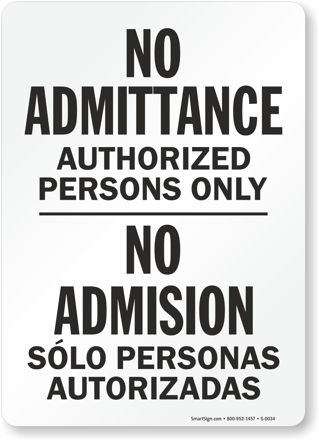 Bilingual No Entry Sign: No Admittance, Authorized Persons Only / No Admision Sólo Personas Autorizadas
