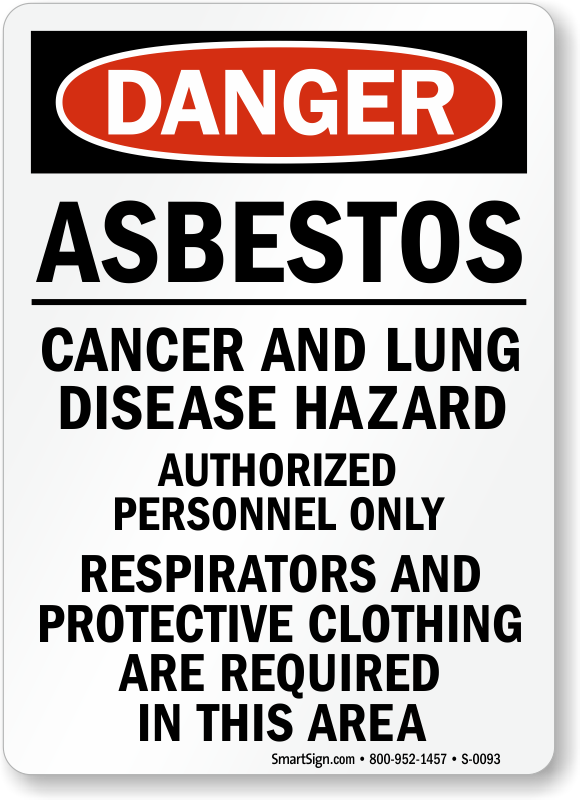 OSHA Danger Sign: Asbestos Cancer And Lung Disease Hazard. Authorized Personnel Only. Respirators And Protective Clothing Are Required In This Area Learn More...