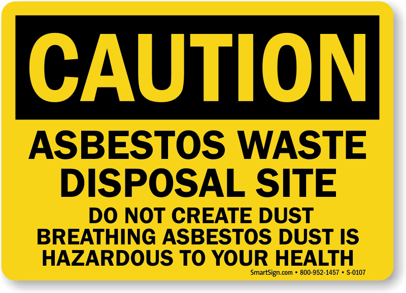 Keep safety first. Use a "asbestos waste disposal site do not create dust breathing asbestos dust is hazardous to your health" sign.