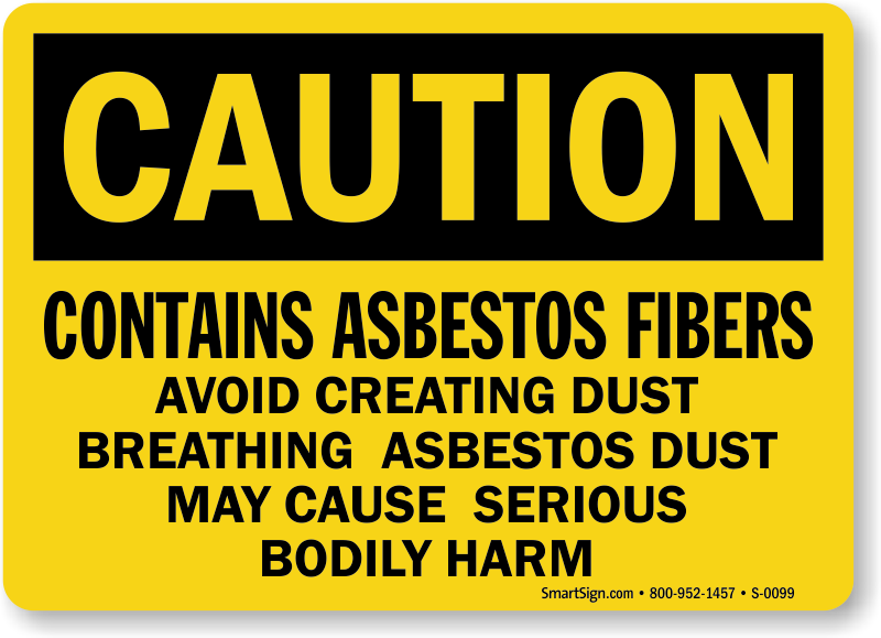 Use a "contains asbestos fibers avoid creating dust breathing asbestos dust may cause serious bodily harm" sign.