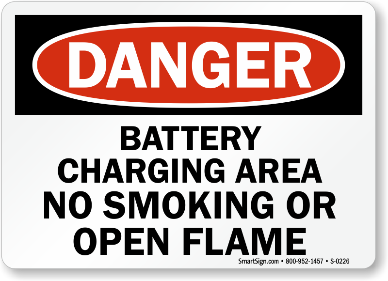 Make your words count! Use a "battery charging area no smoking or open flame" sign.