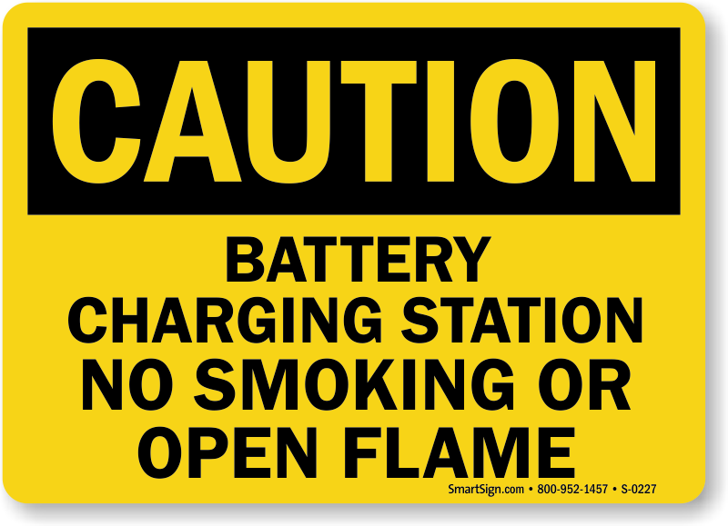 Use a "battery charging station no smoking or open flames" sign. Comply with safety laws and improve your working environment.