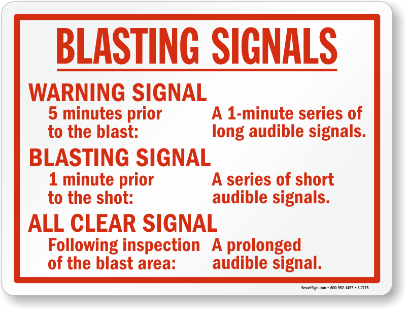 Blasting Signals Sign: Warning Signal, Blasting Signal, All Clear Signal Learn More...