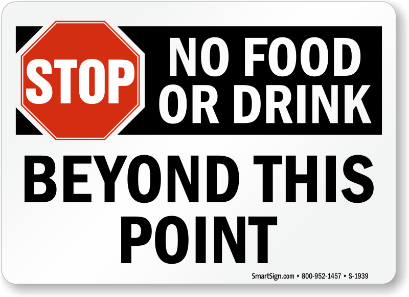 Food Cafeteria Lunchroom Sign: Stop No Food or Drink Beyond This Point S-1939