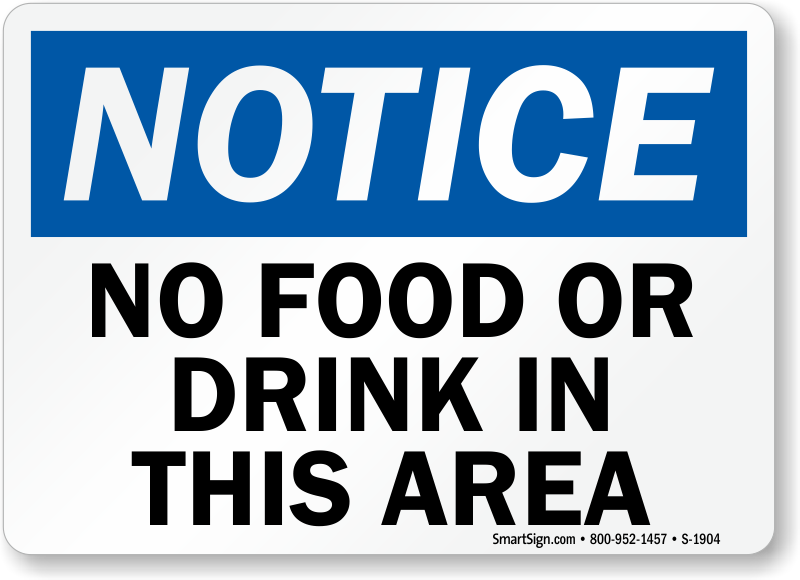 Keep sanitary hazards and pest problems away by posting a sign with your no food or drink policy.