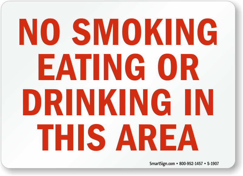 A simple sign can send a powerful message. Post a No Smoking, Eating or Drinking sign to prevent dangerous accidents and reduce maintenance.