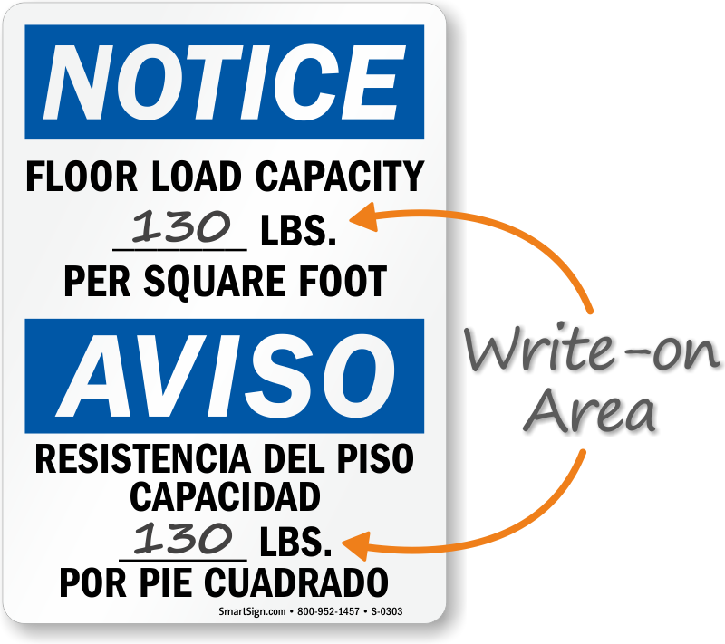 Bilingual OSHA Notice / Aviso Sign: Floor Load Capacity ___ Lbs. Per Square Foot (Write-On)